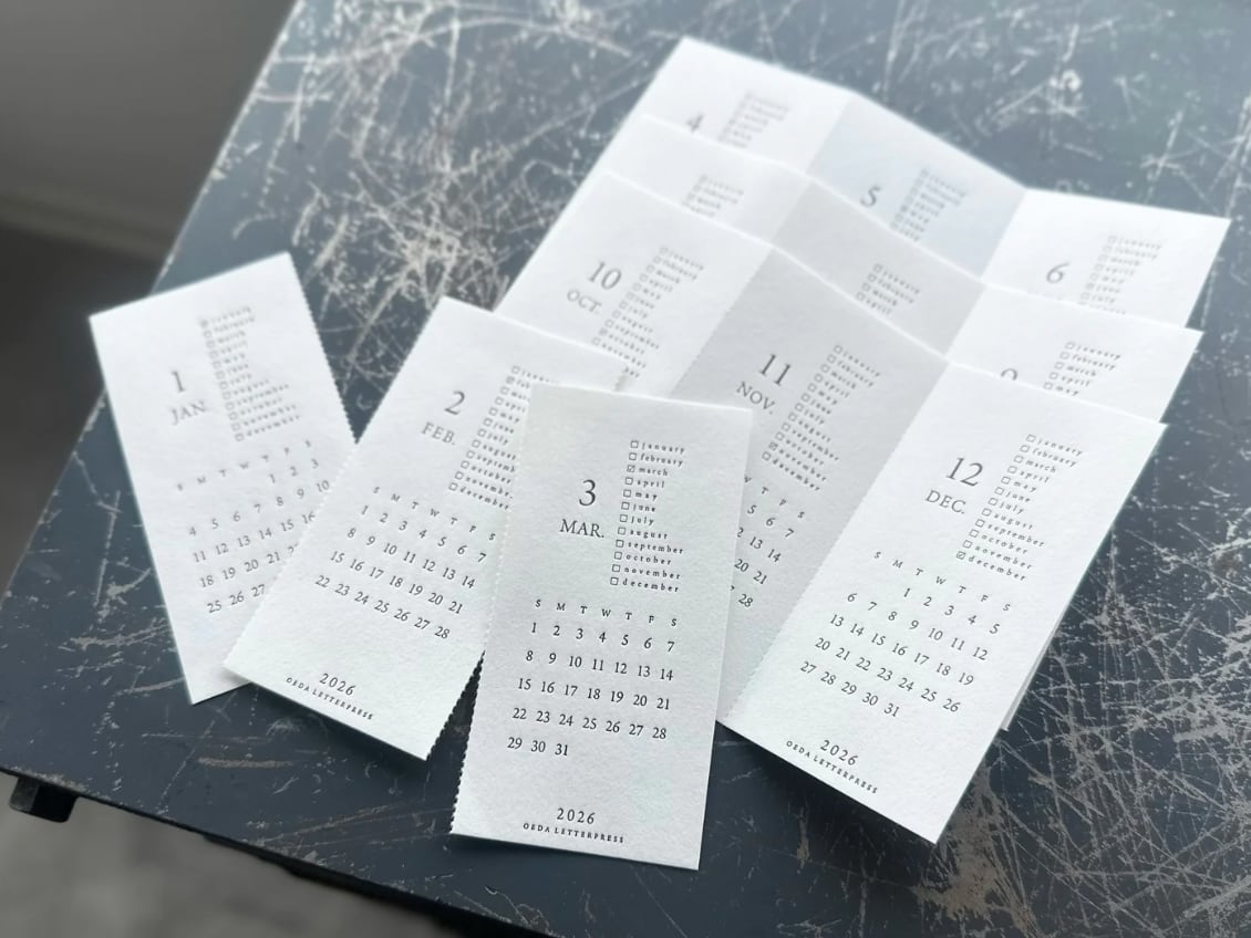毎年定番で製作している大枝活版室のカレンダーのMINIサイズ。
