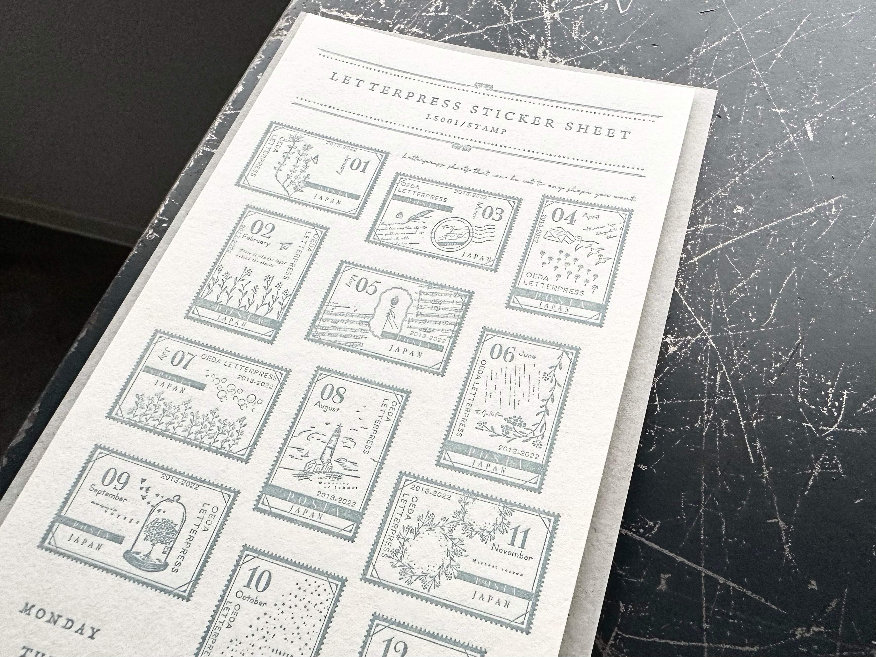 "NEW"【限定色】LETTERPRESS sticker sheet【STAMP/Ash blue】