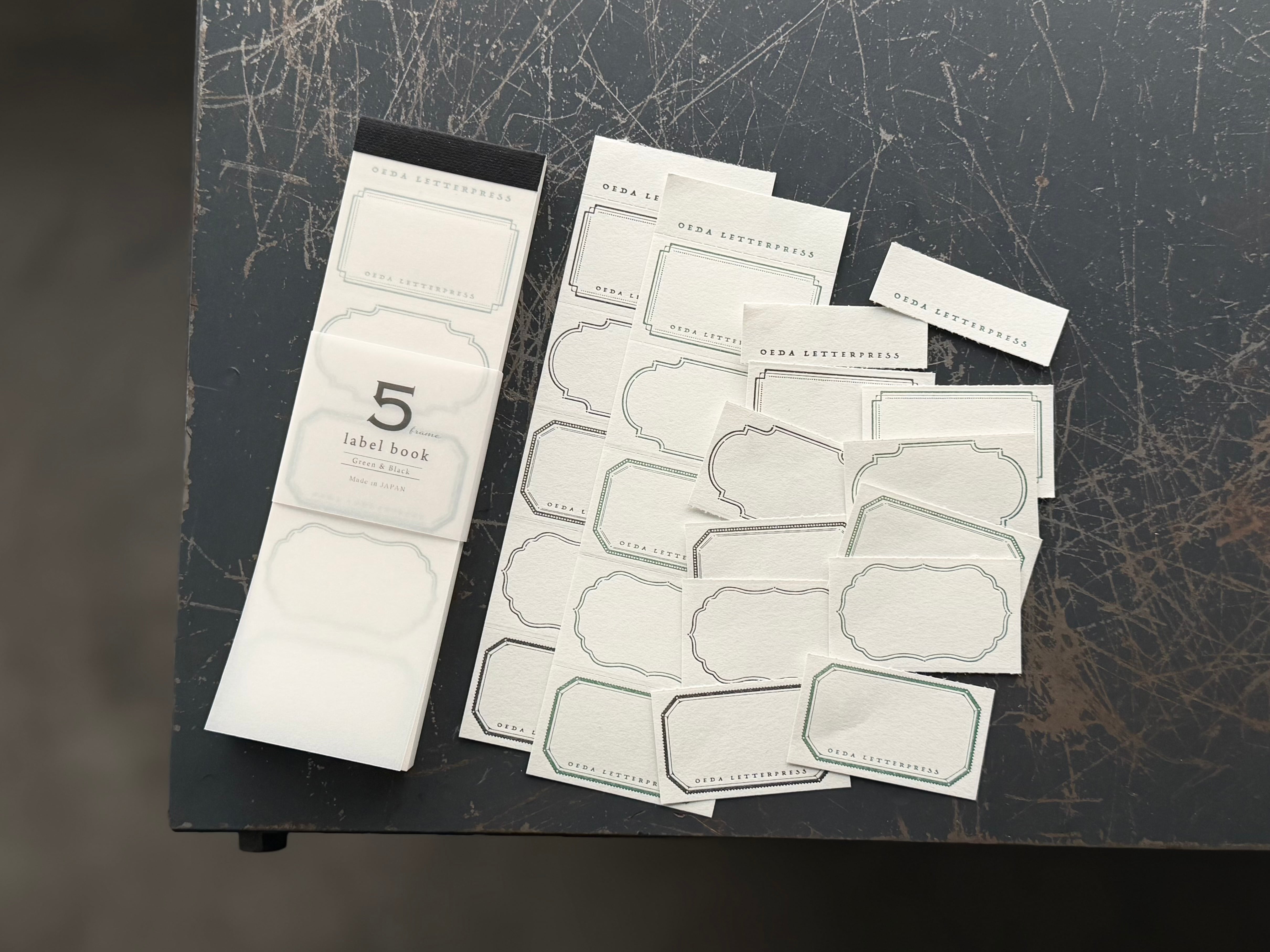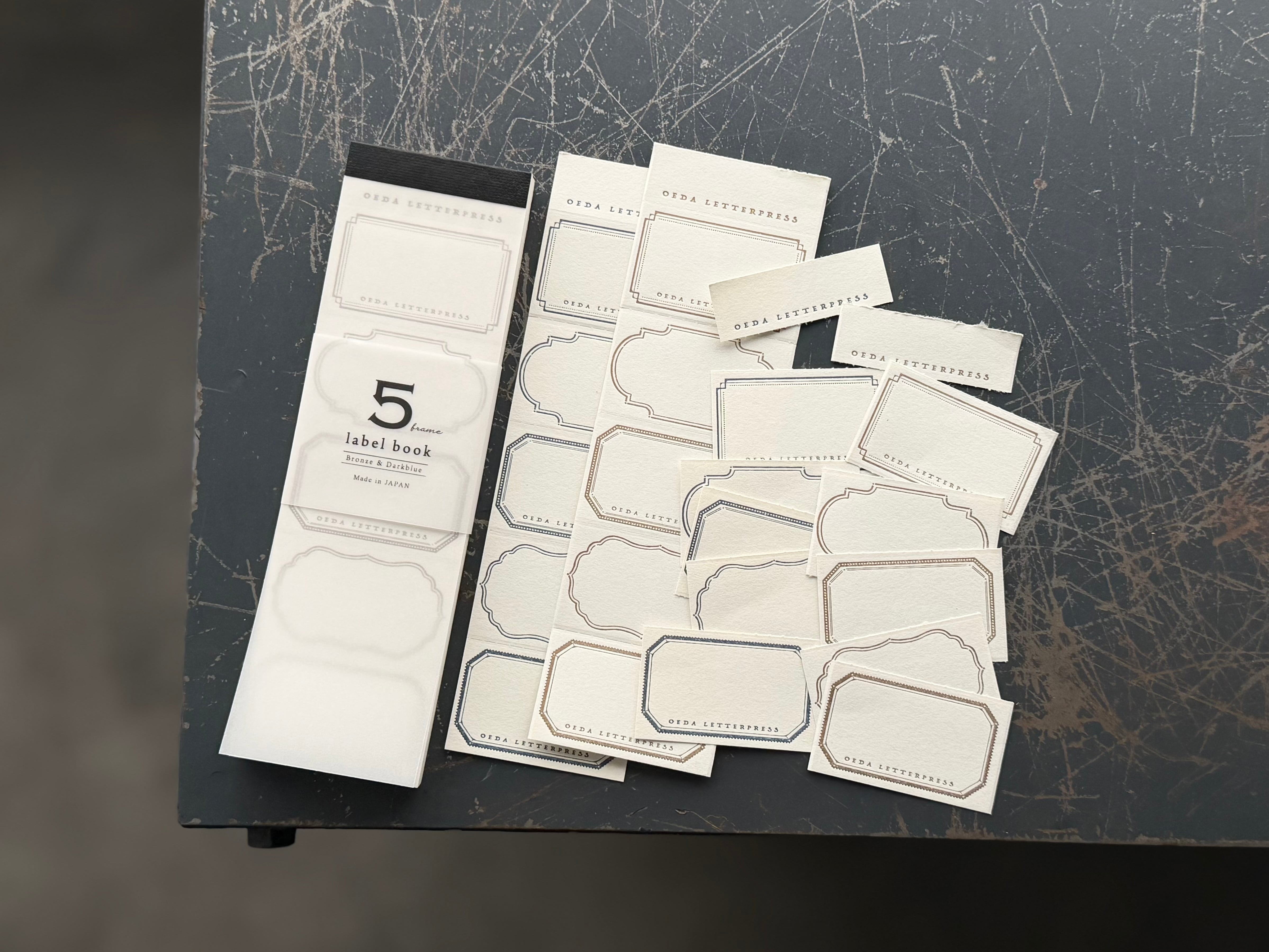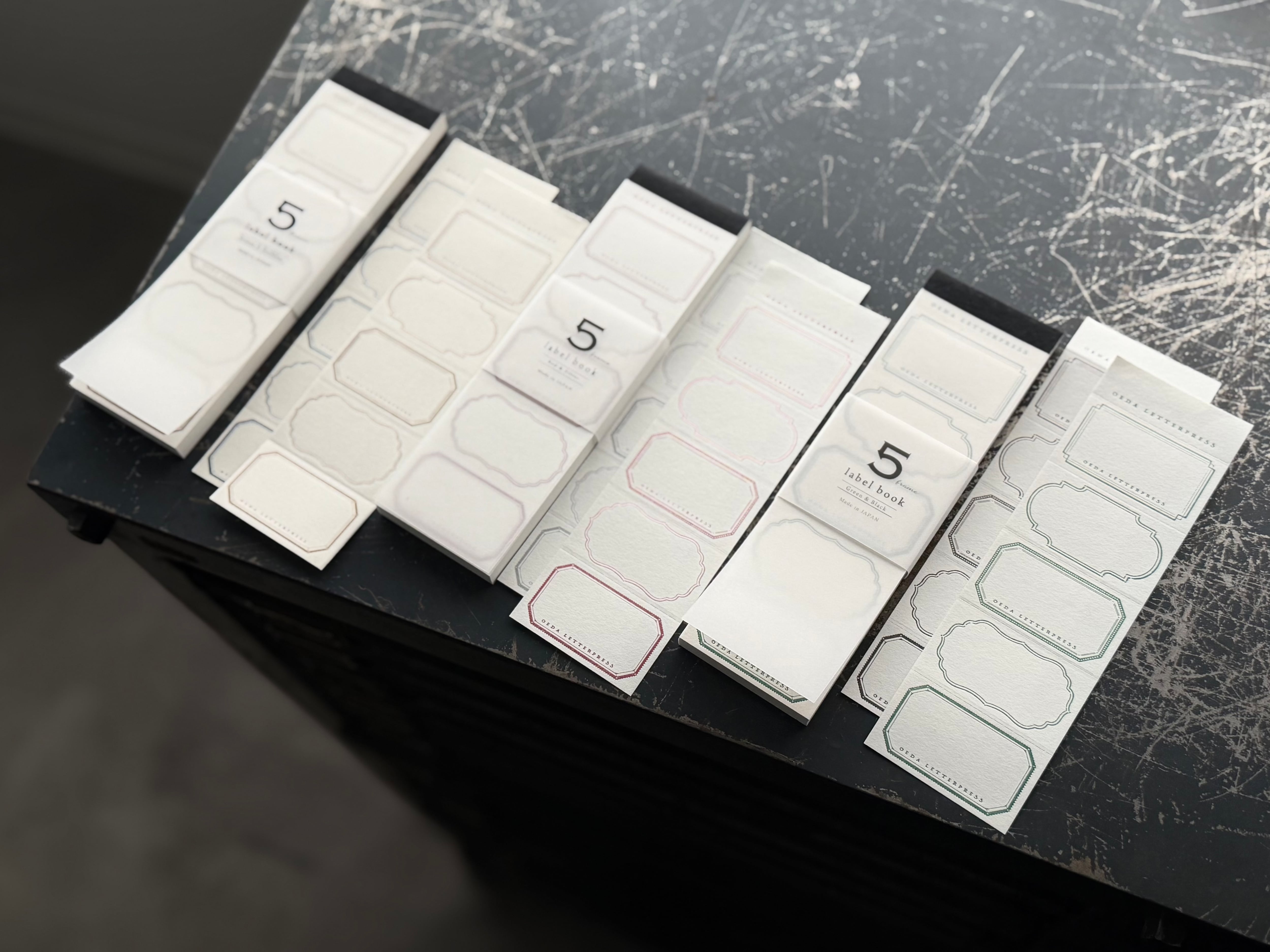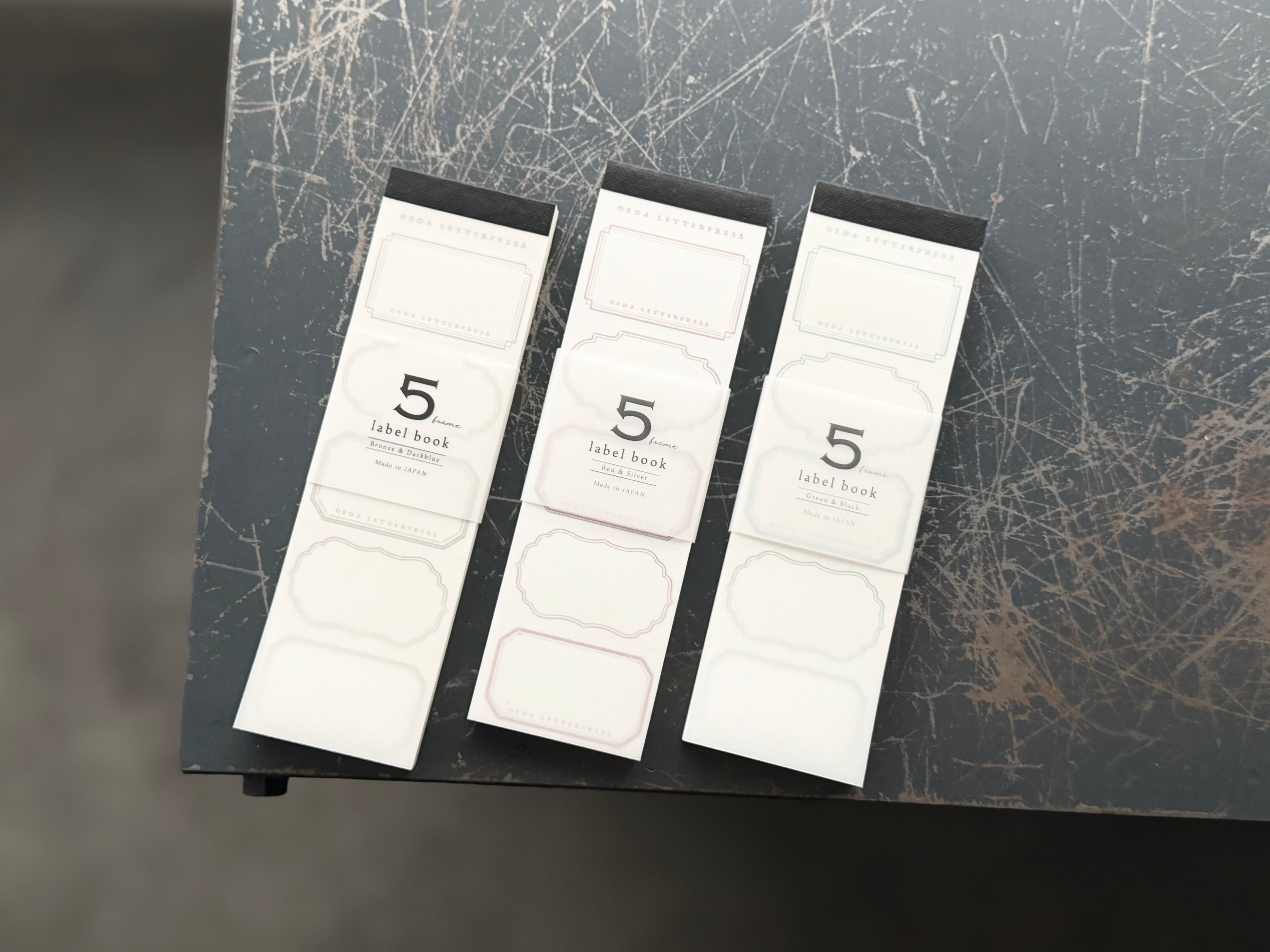 5つのframeが並ぶデザインのラベルブックです。